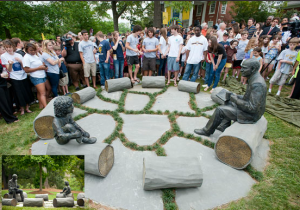 Elliot’s Circle, The Galloway School, Atlanta GA 2010: An outdoor classroom with Elliott Galloway and a student in bronze sitting in a circle of GFRC logs on the ends of which are engraved all alumni since the founding of the school in 1969. Watch a timelapse video of Marty and his team as they create Elliott’s Circle.