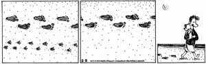 Regarding the constant pressure of meeting deadlines, Patrick says, “When you do a daily comic strip, having faith is a big part of it. I have faith in the Creator and in the creative powers that something’s going to happen. I’ve always approached art on a faith basis — not to struggle with it, but to let it happen.”