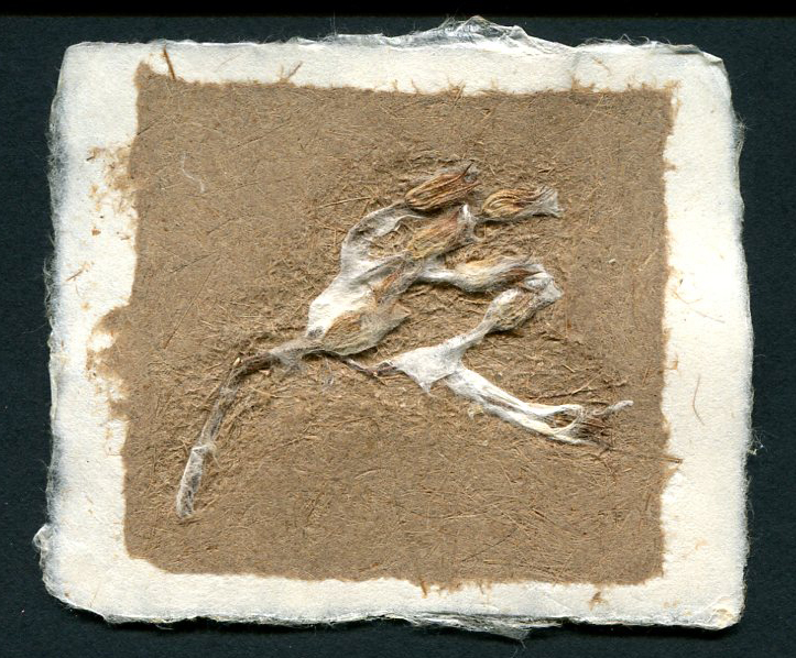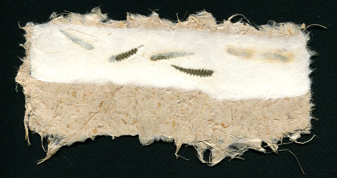 Alice Ball is an explorer in the art of papermaking — gathering raw materials, sometimes embedding things in the wet paper before it dries and creating small collages.