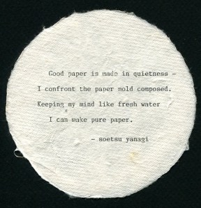 “One of the commandments of papermaking is ‘thou shalt not love any piece of paper better than another.’ You learn from the beautiful pieces and from the not-so-beautiful ones. That’s not unlike worship for me. Some days worship is really hard. Some days it is a joyous and easy — a totally carefree thing. But it’s always there. It’s not something that has to be one way or another.” ~Alice Ball